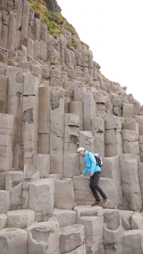 Heute ging es auf zur nächsten Unterkunft nach Höfn. 352 km und damit auch viel Eis lagen vor uns. Einen ersten kurzen Abstecher machten wir zum Strand in Vik, wo es glitzernden schwarzen Lava-Sand und riesige Basaltsäulen zu sehen gab, die angeblich fleißige Trolle geschaffen haben sollen.