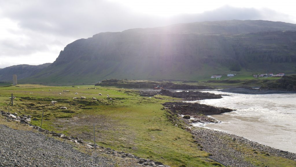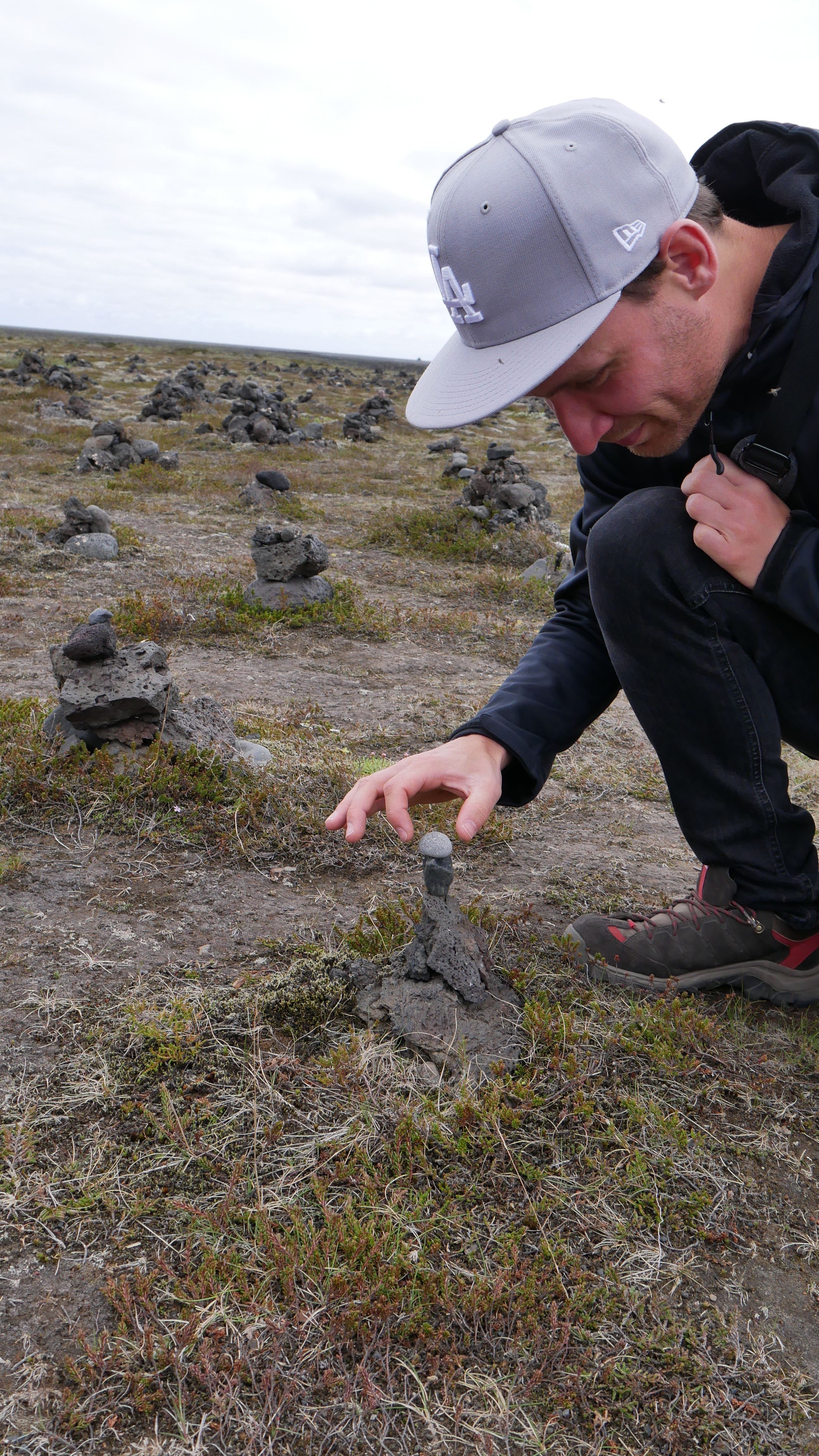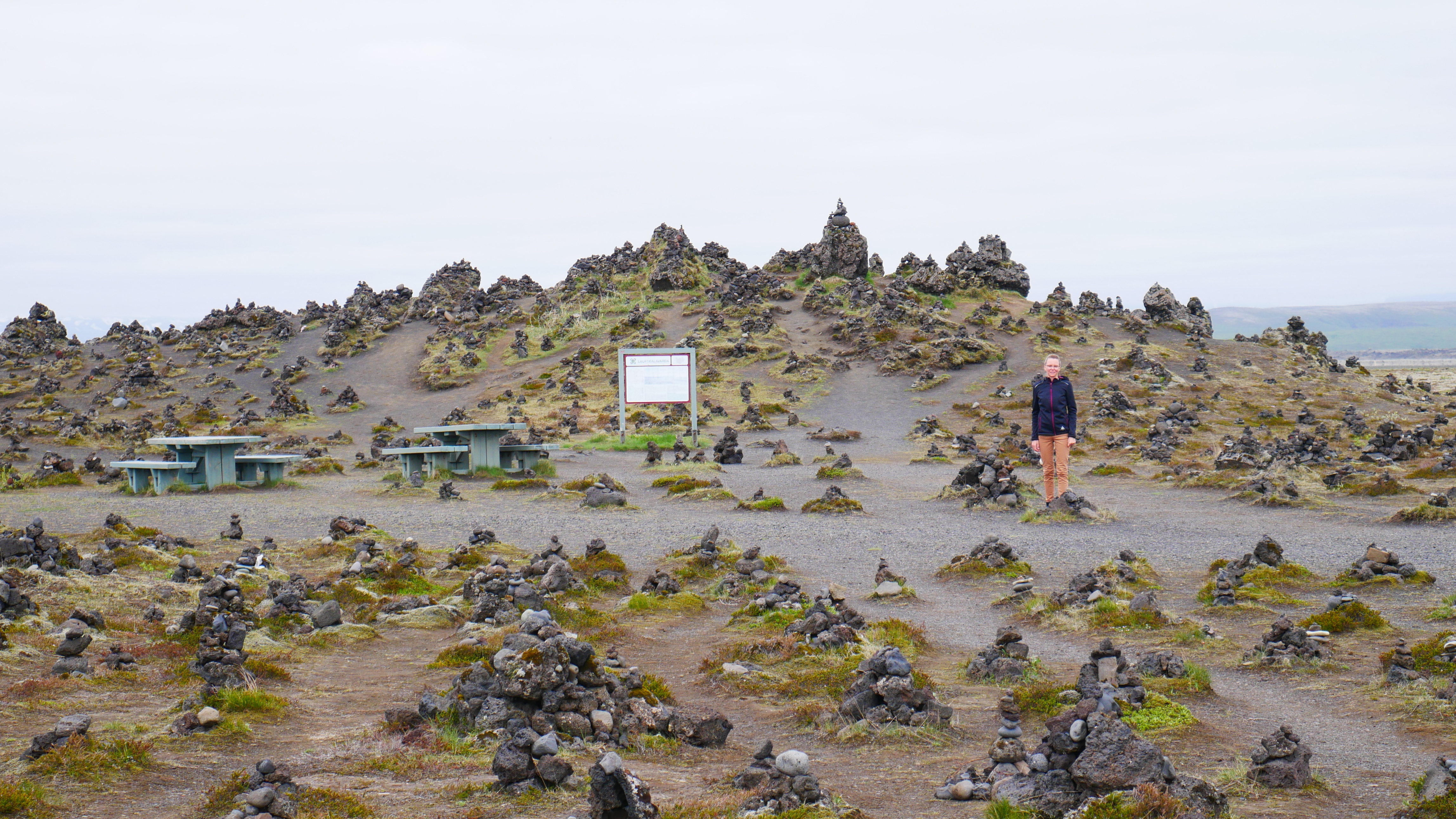 Danach sollte es streng entlang der Straße 1 gehen, der sogenannten Ringstraße, die einmal um die Insel führt. Ein Road-Trip quasi. Damit unsere Reise in den nächsten Tagen gut läuft, sind wir den Anweisungen der Einheimischen gefolgt und haben einen Steinturm an der Ringstraße gebaut. Das soll nämlich Glück bringen. Wir müssen sagen bis jetzt hat es gewirkt – alle Flugenten und Vögel konnten unserem Auto rechtzeitig ausweichen und uns ist bis jetzt auch kein weiterer Unfall passiert. Läuft also…