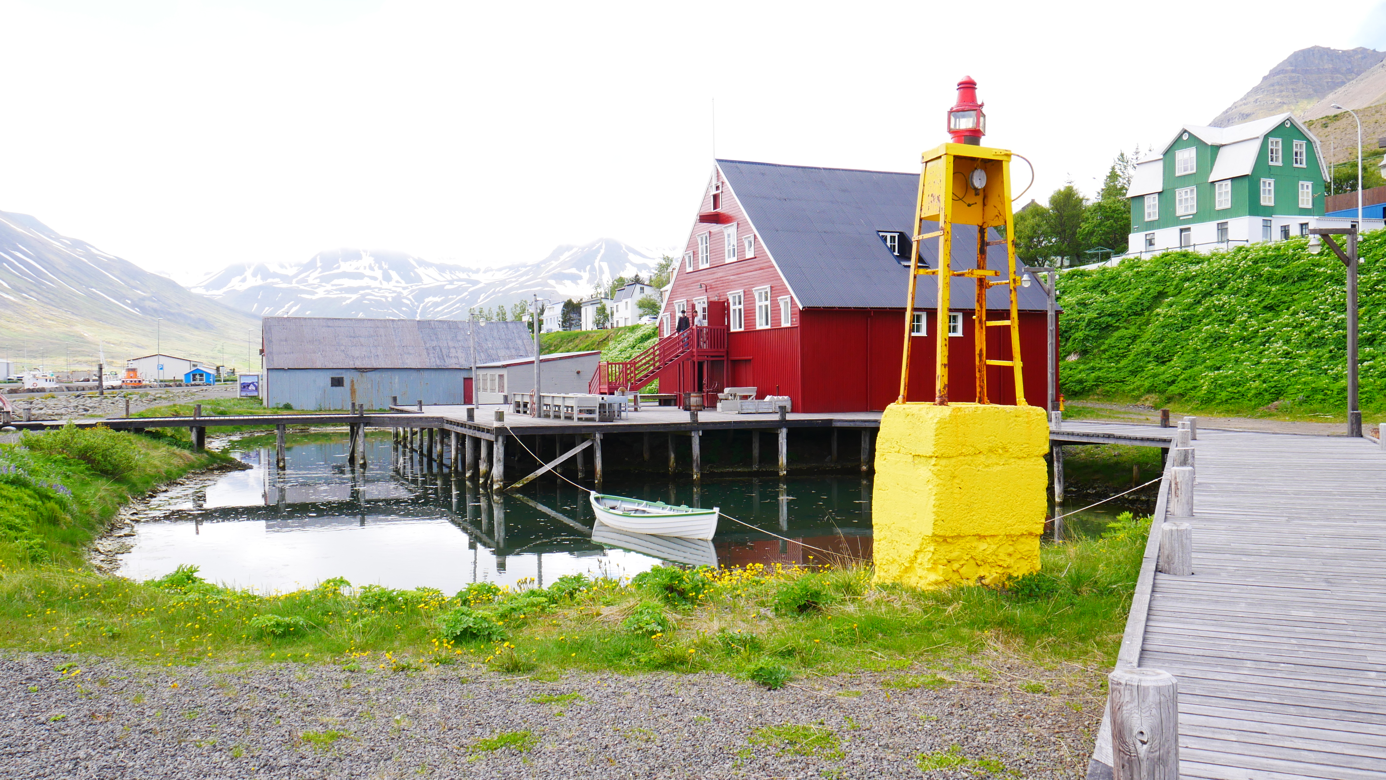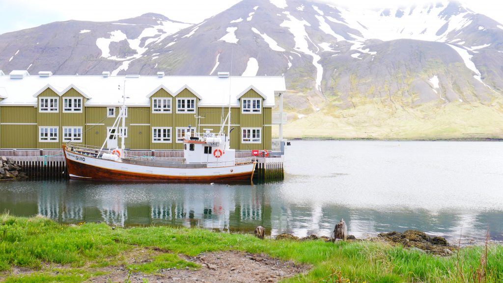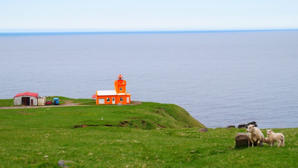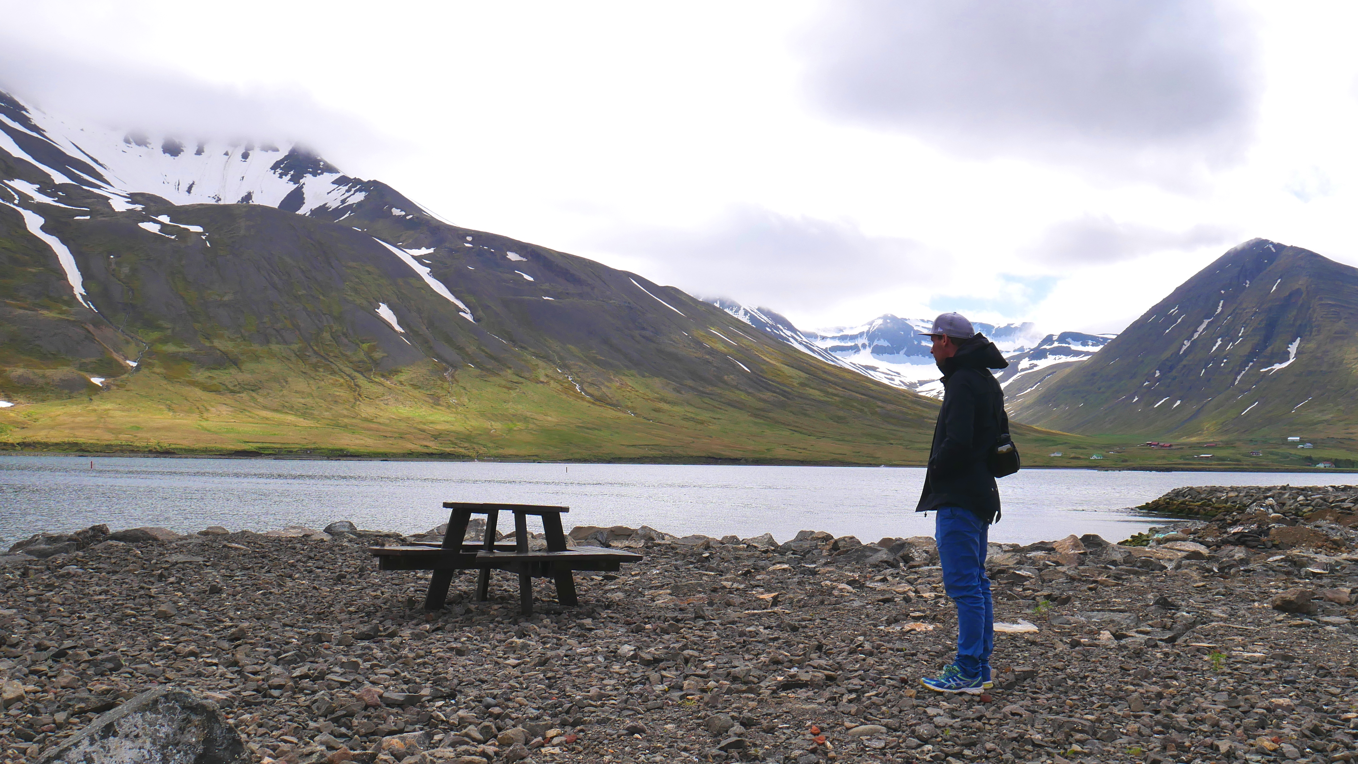 Zwischen den Fjorden haben wir viele Tunnel durchquert. Einige der Tunnel erinnerten mich irgendwie an meine Jugend, als wir im Schaubergwerk im Harz mit der Grubenbahn durch die Stollen fuhren. Eine enge einspurige Straße, die gerade genug Platz für einen LKW bietet, alle 400-500m eine Ausweichbucht in der man den Gegenverkehr passieren lässt, und die Wände schroff und nass. Das wäre in Deutschland nicht denkbar. Das Ziel war die nördlichste Stadt Islands. Wir waren hier nur noch 50km vom Polarkreis entfernt. Am Leuchtturm hielten wir Ausschau nach Orka-Walen und Seehunden, die hier manchmal zu sehen sein sollten. Aber wir sahen nur das weite Meer, Berge und ein paar dusselige Schafe, die sich den Hintern an herumliegenden Findlingen kratzten.